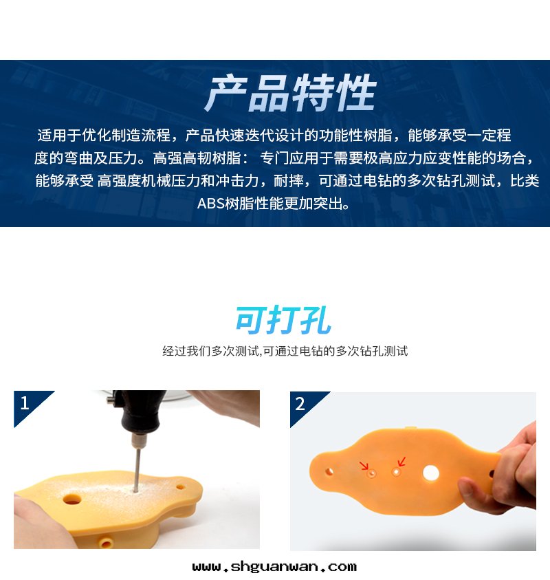 類(lèi)ABS樹(shù)脂型号(hào):182,具有(yǒu)類(lèi)似于(yú) ABS 材料的(de)性(xìng)能(néng),具備不(bù)錯的(de)韌性(xìng)、硬(yìng)度(dù)和(hé)強(qiáng)度(dù),能(néng)鑽(zuàn)孔、打(dǎ)磨,能(néng)作(zuò)为(wèi)機(jī)械零(líng)配件(jiàn)来使用(yòng),韌性(xìng)和(hé)耐磨均優于(yú)剛性(xìng)樹(shù)脂。适用(yòng)于(yú)優化(huà)制造流程,産品快(kuài)速叠代(dài)设計(jì)的(de)功能(néng)性(xìng)樹(shù)脂, 能(néng)夠承受一(yī)定(dìng)程度(dù)的(de)弯曲及(jí)壓力。